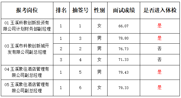 玉溪科教创新投资有限公司2023年市场化选聘经营管理人员面试成绩公布及体检通知